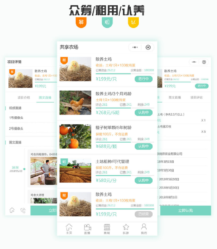 共享农业小程序-支持拼团、砍价、秒杀、活动报名、溯源查询、众筹租用认养等