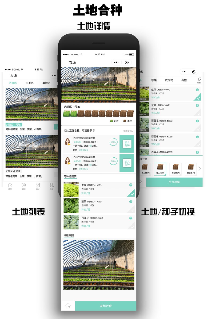 互联网加共享农业小程序,支持拼团、砍价、秒杀、活动报名、溯源查询、众筹租用认养等