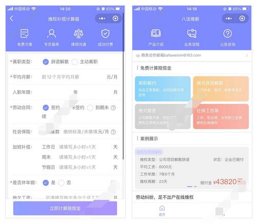 劳动维权小程序线上平台,声音需要倾听,权利需要保护。我们致力于劳动维权,帮助,协助劳动者合理合法的维权!我们通过公众号和小程序,劳动者提供资料,我们将详细给出劳动者补偿方案。提供劳动仲裁协助,协调用人单位的补偿!