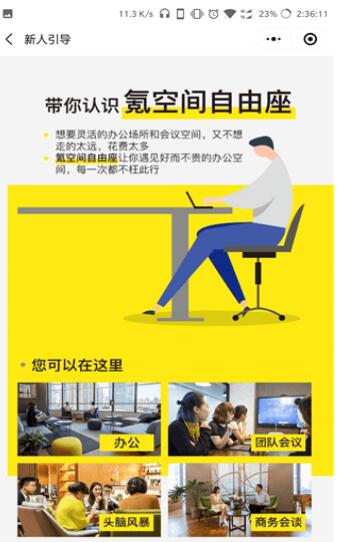 氪空间是以联合办公为载体,社群为纽带的企业服务平台。氪空间诞生的初心是解决小微团队办公难的问题,使命是“让办公更美好”,以空间产品构建线上线下社群,在提供联合办公空间的基础上,从用户需求出发推出更多围绕办公生态的服务,实现“赋能一亿人的快乐办公生活”的愿景。联合办公企业氪空间今日在上海正式推出时租类办公新产品“自由座”。据介绍,“自由座”面向C端市场,用户可使用手机在线预订氪空间分布在全国的会议室、移动工位以及社区的所有共享区域和办公设施,按照使用时间来支付费用。