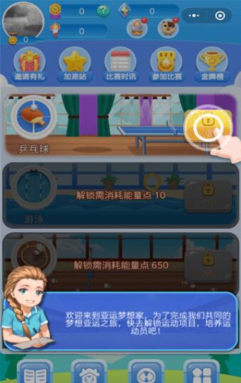 亚运梦想家是以亚运会为主题的休闲体育类互动小游戏,打造全方位亚运体验,以休闲娱乐的方式,全民共享亚运.“亚运梦想家”是一款以运动为主题的模拟经营类的微信小程序,用户可通过小程序以游戏的形式体验多种运动项目,以及关注亚运赛事相关信息。央视网联合微信小游戏“方块玩”推出“亚运会梦想家互动小程序“。